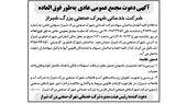 آگهی دعوت مجمع عمومی عادی بطور فوق العاده شرکت خدماتی شهرک صنعتی بزرگ شیراز