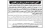 آگهی دعوت حسابرس و بازرس قانونی